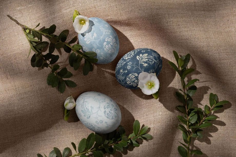 Painted egg mockups, Easter gift box and bag templates, spring greeting cards, egg carton packaging, and complete Easter scene creators with multiple editable elements. We styled these with real spring props — no stock photo shortcuts.